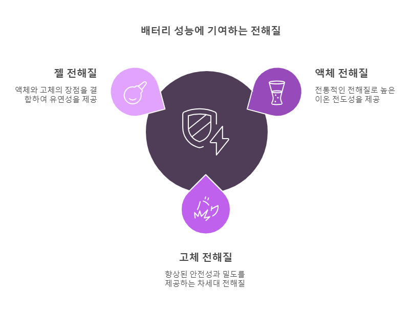 전해질 기술은 배터리 성능을 결정짓는 핵심 요소이며, 액체, 고체, 젤 전해질 각각의 장단점을 활용한 차세대 배터리 개발이 활발히 진행 중입니다.