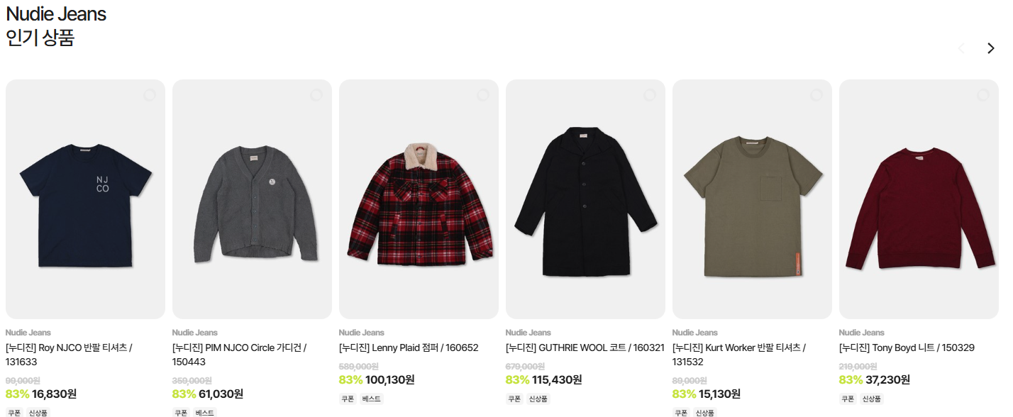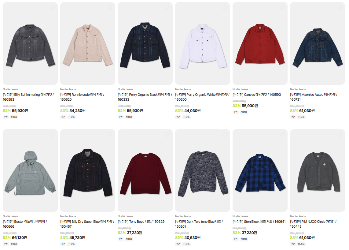 이 외에도 다양한 데님 팬츠, 재킷, 셔츠 등이 할인 중이니, 취향에 맞는 아이템을 찾아보세요.